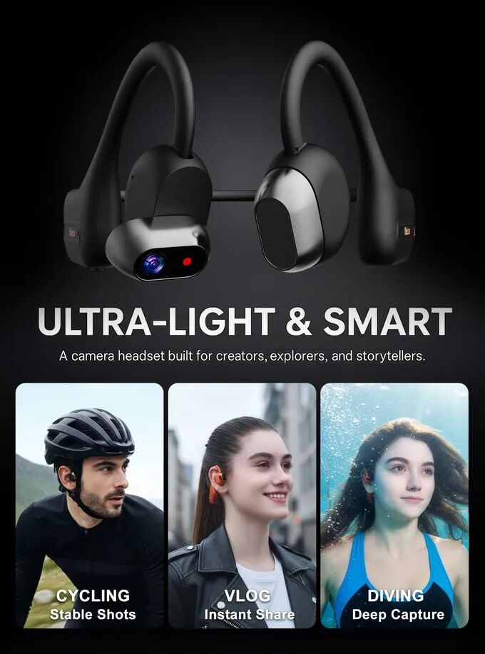 MusicCam——一款具备视觉和听觉交互的摄像头头戴设备。配备2K 6轴防抖镜头、20米防水性能和骨传导开耳音频,专为骑行、徒步和潜水设计——无需支架,无需繁琐操作,无任何妥协。