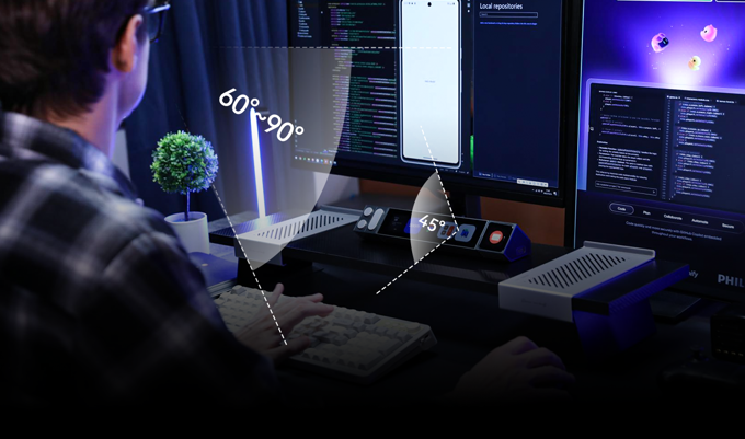 智能光条,与显示器灯光同步,自动调节环境光线。