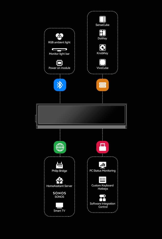 其多模态通信能力构建了USB/HID、蓝牙Mesh、IP网络和QuantumLink四大高效协议桥梁,实现与所有设备的无缝、精准通信。