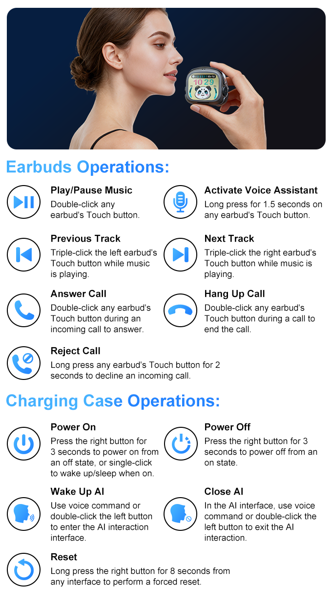 😄 在不同表情之间切换,观察充电盒动画效果,控制TikTok、快速拍照和录音,成为你娱乐互动的智能伙伴。