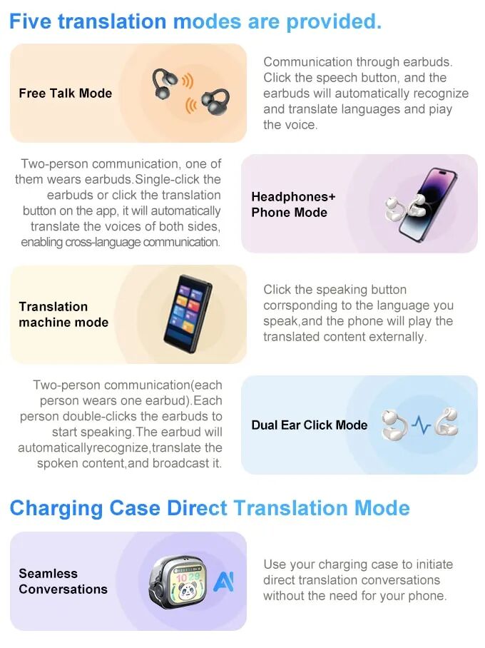 BonfireWanderer R3 AI耳机支持实时多语言AI翻译,覆盖超过160种语言。无缝连接世界,助你在旅途、跨国合作或语言探索中如同拥有个人译员,让沟通变得轻松便捷。