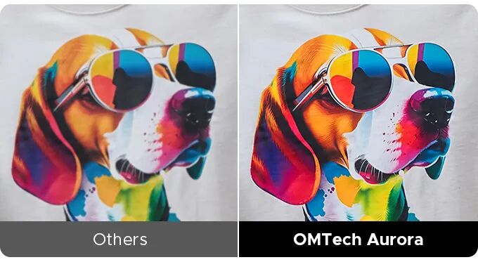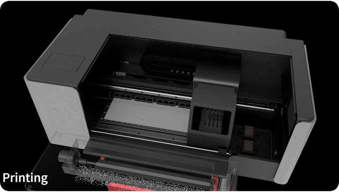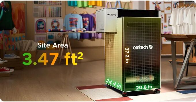 Aurora 的垂直设计将其占地面积大幅缩小至仅 3.47 平方英尺,与同类 DTF 打印机相比,节省高达 56% 的空间。