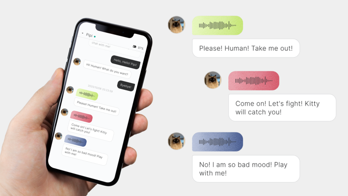 PettiChat将你的话语转化为宠物的语言,并将它们的情绪转化为你的语言。